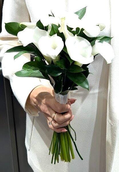 Elevate your bridal party's aesthetic with the sophisticated Calla Lily Bridesmaids Bouquet. Featuring pristine white calla lilies, this bouquet provides a timeless and elegant complement to your wedding. This classic floral arrangement effortlessly enhances your bridesmaids' appearance.